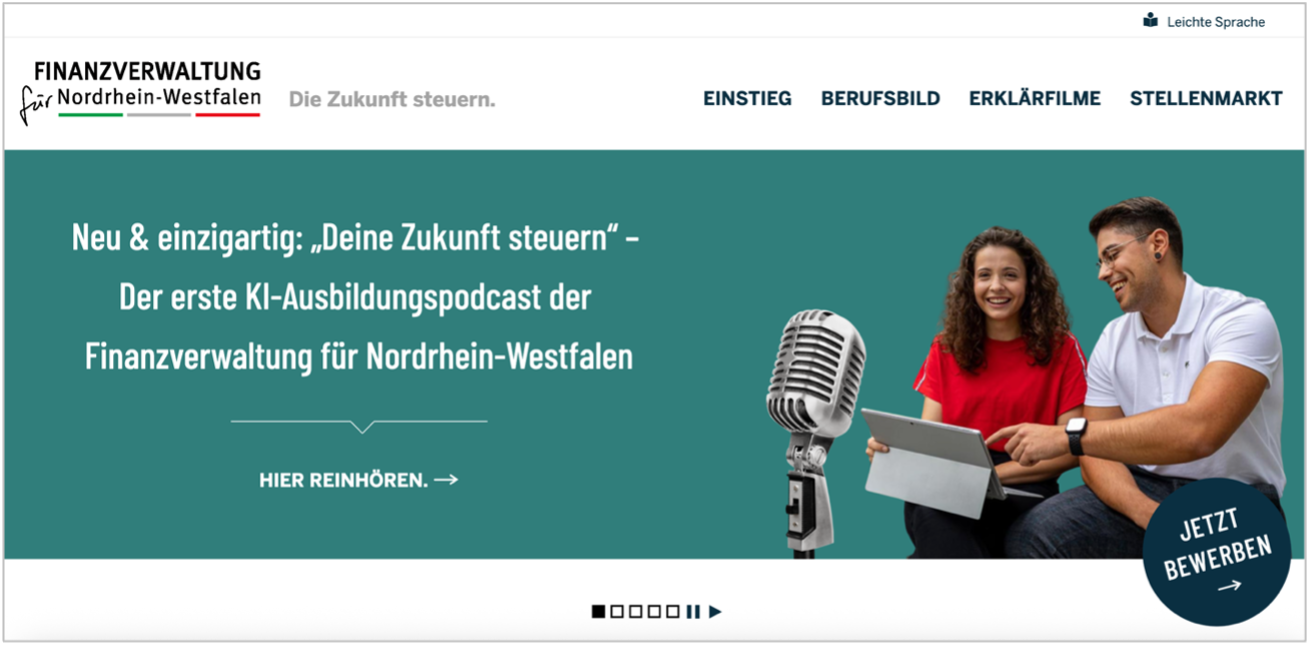 KI-generierter Ausbildungpodcast der Finanzverwaltung NRW. Screenshot von https://die-zukunft-steuern.nrw/