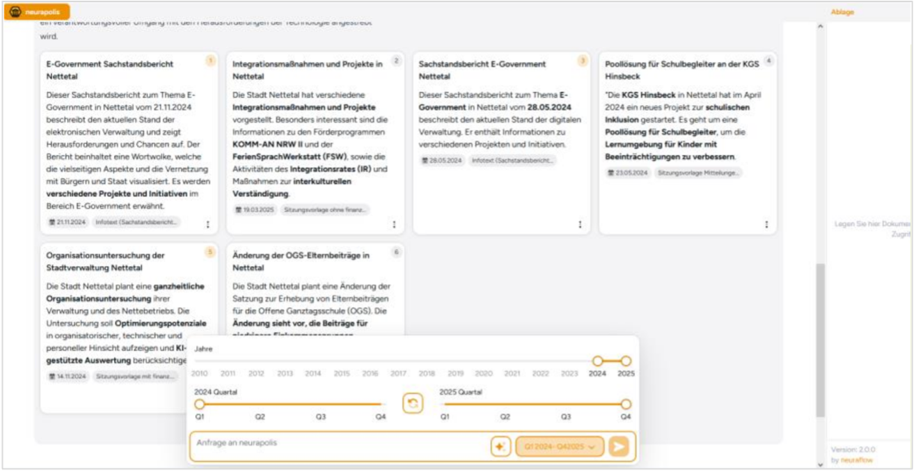 Viele Kommunen bieten bereits einen öffentlichen Ratsinformationsdienst, in dem Sitzungsvorlagen, Niederschriften etc. eingesehen werden können. Auf diese Weise wird die Transparenz politischer Entscheidungsprozesse erhöht. In Wertheim können Bürger:innen Protokolle von Rats- und Ausschusssitzungen nun wesentlich schneller einsehen – dank KI-gestützter Protokollierung (dieses Video gibt Einblicke). Dafür wurde die Stadt mit dem „Bewährt vor Ort“-Siegel ausgezeichnet. Die Stadt Nettetal arbeitet daran, den Zugang zu Ratsinformationen mit Hilfe von KI zu erleichtern und niederschwelliger zu gestalten. Der „Ratsinformationsbot“ wird derzeit intern getestet und soll perspektivisch auch auf Ratsmitglieder und die Öffentlichkeit erweitert werden. Weitere Beispiele für den KI-Einsatz in Nettetal liefert dieser Artikel von Kommune21.