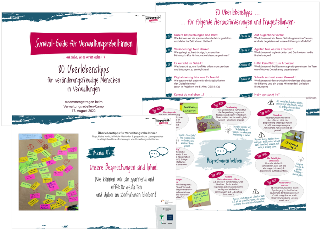 - Blättert durch die Karten, wenn ihr Inspiration sucht, an welchen Ansatzpunkten und auf welche Weise ihr frischen Wind in die Verwaltung bringen könnt.